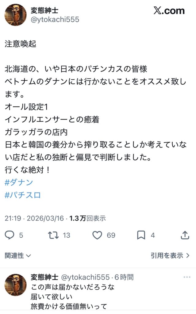 ってホーチミンのスロ屋の常連さんから聞いた。